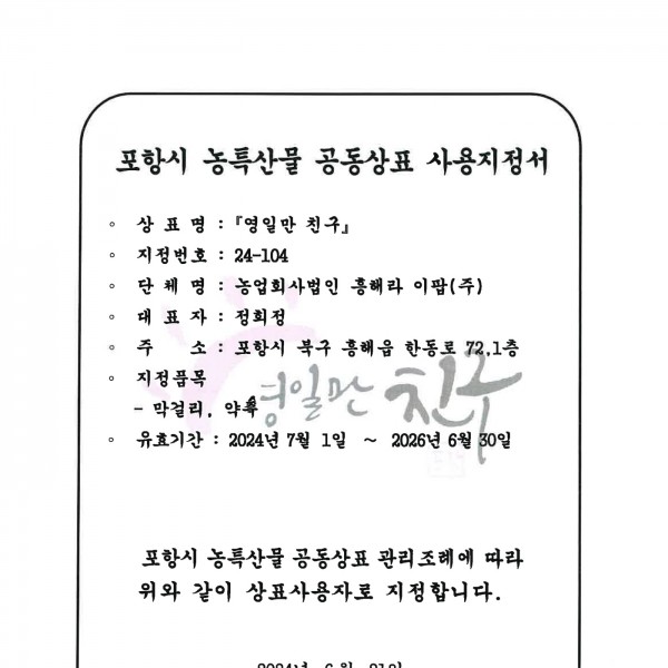 임금님에게 진상하던 흥해의 이팝 쌀로 만들었습니다.